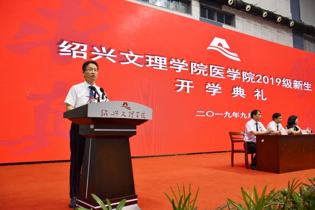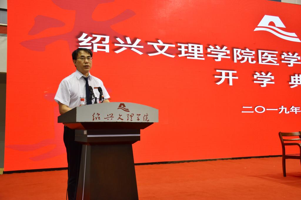 9月2日下午,我院2019级新生开学典礼在河西校区体育馆隆重举行,39位首届临床医学专业学位硕士研究生和来自全国10个省份的304位新同学将开启他们崭新的求学生涯。开云电子竞技官方网站院长、校附属第一医院院长郭航远,开云电子竞技官方网站党委书记、副院长夏瑞明,开云电子竞技官方网站党委委员、常务副院长葛建荣,开云电子竞技官方网站副院长张剑、陈三妹,开云电子竞技官方网站副院长、校附属医院院长张伟阳,开云电子竞技官方网站副院长、校附属诸暨医院院长朱铁明,开云电子竞技官方网站副院长、校附属上虞医院院长赵之青,优秀校友代表、绍兴市第七人民医院院长田国强在主席台就坐。各专业、科室、系(部)、中心负责人,全体辅导员、班主任和部分任课教师等出席开学典礼。典礼由院党委副书记金坚强主持。