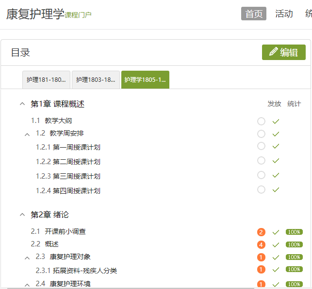 图1 学习通康复护理学课程目录
