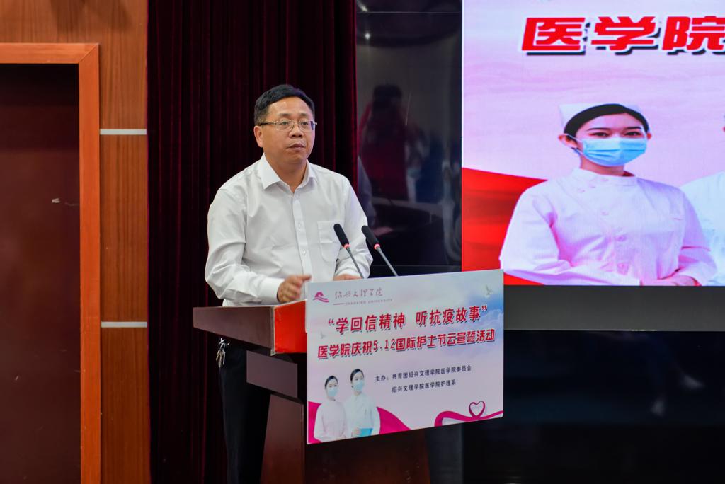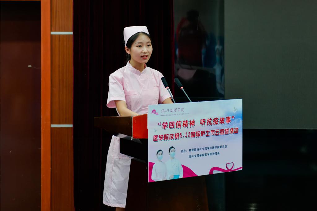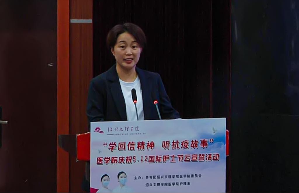 5月12日下午,学院举行主题为“学习回信精神,聆听抗疫故事”“5.12国际护士节”云宣誓活动。副校长柳国庆,绍兴市第三批援鄂医疗队护理队长、绍兴文理学院附属第一医院手术室副护士长俞建娣,浙江省第三批援鄂医疗队队员、绍兴文理学院附属医院急诊科副护士长钱瑾瑜,学院党政班子成员,学生科、团委主要负责人、护理系全体教师、护理系部分学生代表参加活动。活动由开云电子竞技官方网站学生会主席、护理171班程潇琦同学主持。