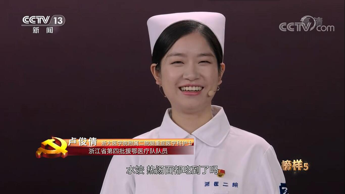 3月22日,我院护理学2019届152班校友卢俊倩通过央视综合频道首播的《榜样5》专题节目向全国人民分享了她的援鄂经历,作为浙江省援鄂队伍中最年轻的队员,卢俊倩克服稚嫩、战胜畏惧、冲向“战场”的事迹令许多人为之动容。