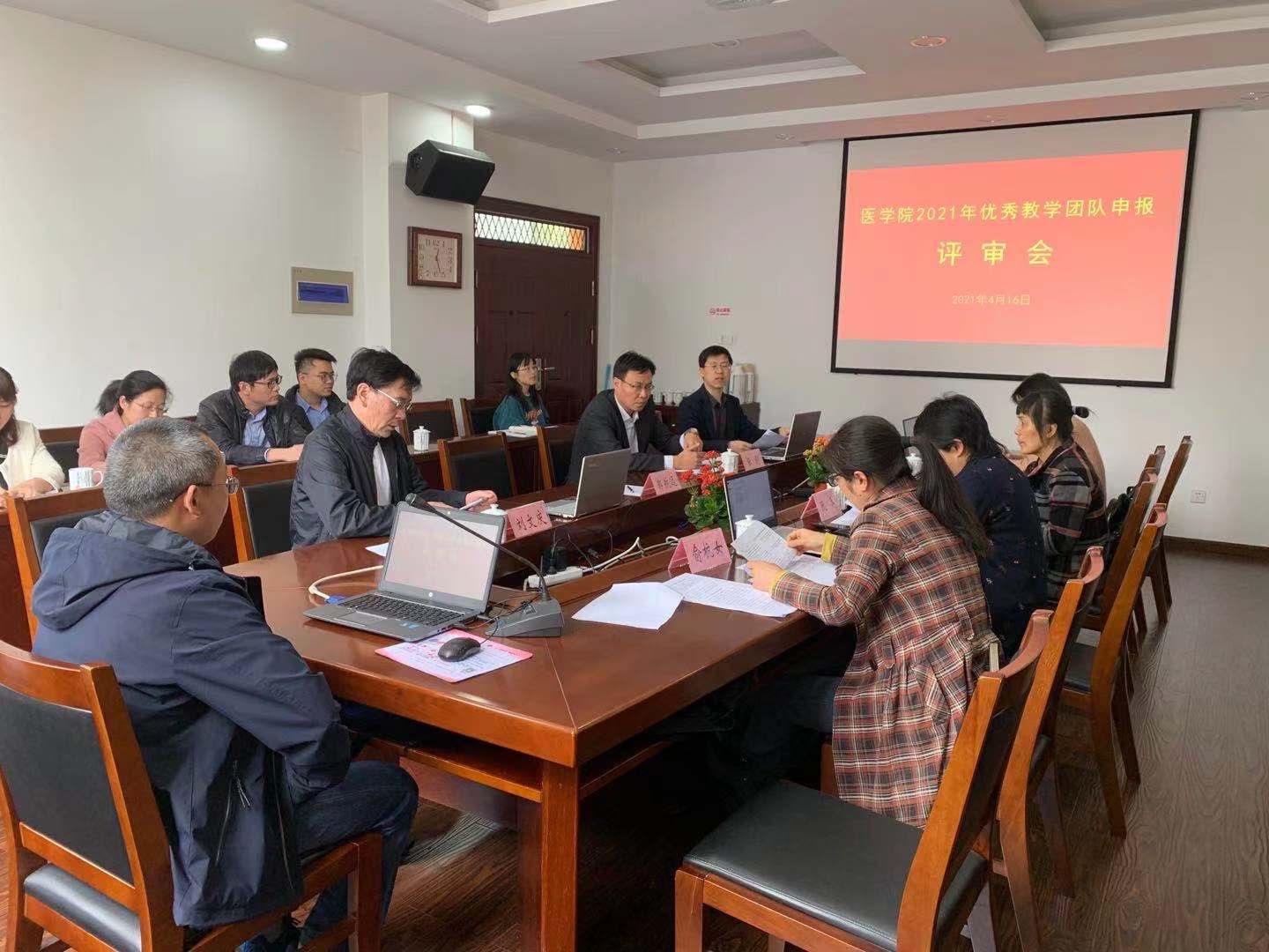 4月16日中午,学院在行政楼219会议室召开2021年优秀教学团队申报评审会。副院长张剑,校教学督导赵梁红、阮萍,校教务处教学科科长俞杭女,校教务处教师教育管理科科长郭燕,院教师发展中心主任刘文庆担任评审专家,院党委委员、教研科科长马国庆主持评审会。