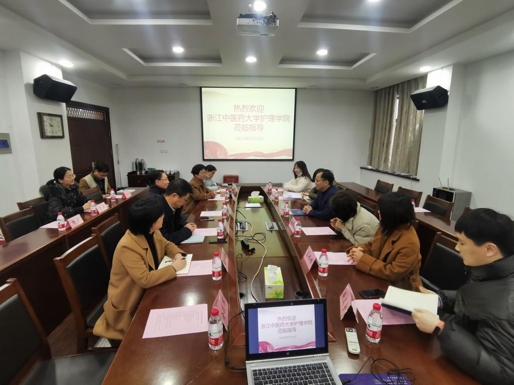2月24日上午,浙江中医药大学护理学院书记李海滨带领护理学专业教师、实验教师等一行6人来访我院,就护理实验室整体建设、设备和安全管理、劳动实践制度等进行交流。校党委委员、学院院长郭航远,常务副院长葛建荣、副院长邢海燕,护理系、医学实验中心负责人,以及部分教师参加座谈。