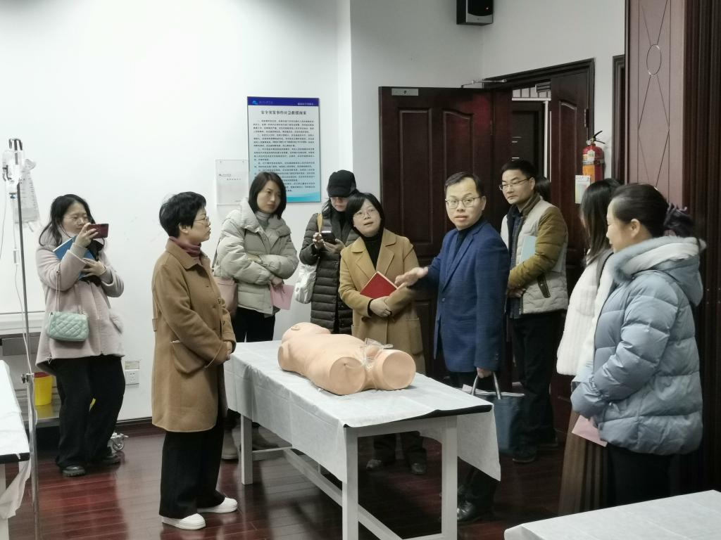 郭航远对李海滨书记的到访表示欢迎,也对两校的合作寄予期许。护理系孙一勤主任就护理实验室建设情况进行了简单介绍。邢海燕一行人陪同来宾参观了学院的临床实验中心、外科护理实验室、内科护理实验室、老年护理实验室、社区护理实验室、助产实训中心等。参观的过程中,实验室老师对学院各实验室的功能、运行管理等作了详细介绍,就实验室整体建设情况,文化建设情况,实验室人员配备,安全管理制度,学生管理,劳动实践等作了介绍。