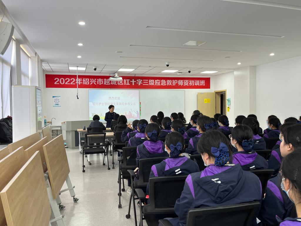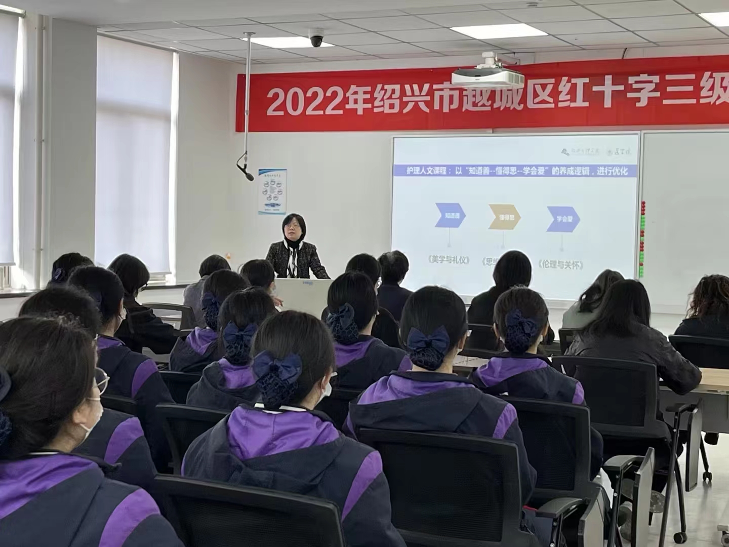 在交流活动会上,护理系部分教师与绍兴护士学校的学生进行交流,学生代表为两校老师敬献鲜花表示感谢。