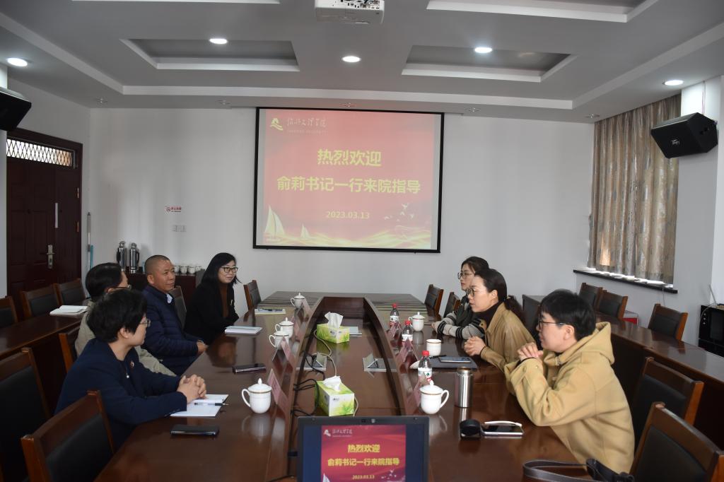 3月13日,绍兴护士学校党委书记、校长俞莉,副校长寿菲等一行九人带领2020级护理专业中本一体化班级学生来学院开展校园体验日活动。校党委委员、院长郭航远,党委书记吴剑平、副院长邢海燕以及护理专业学科带头人陈三妹教授,护理系主要负责人、学生科及学院护理系部分专业教师和学生参加交流。