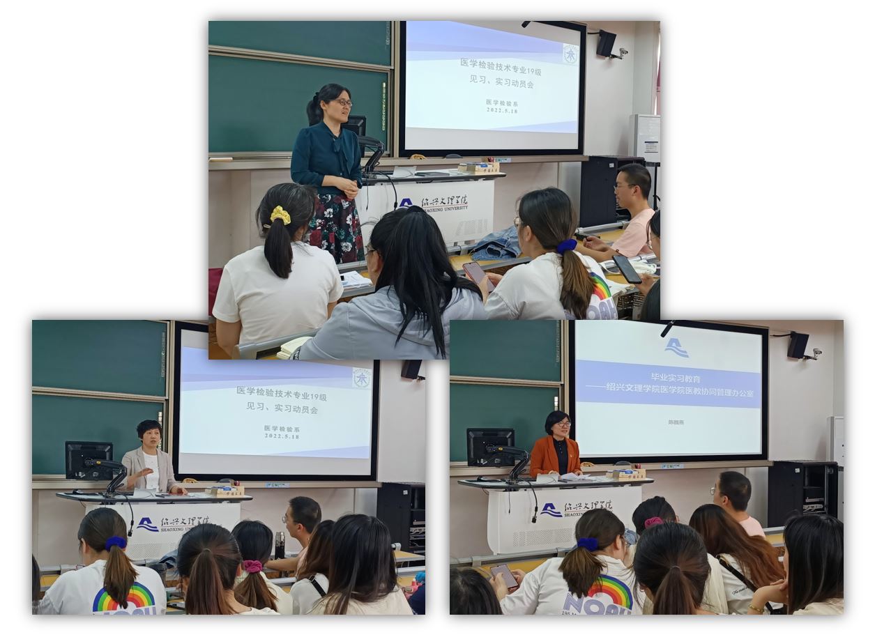 2022年5月18日下午我系召开2019级医学检验技术专业临床见习、毕业实习动员大会,会议由系副主任刘晓瑜老师主持,院医教协同办陈魏燕老师、校附属第一医院检验科吴东东老师应邀参会及我系部分教师参加。