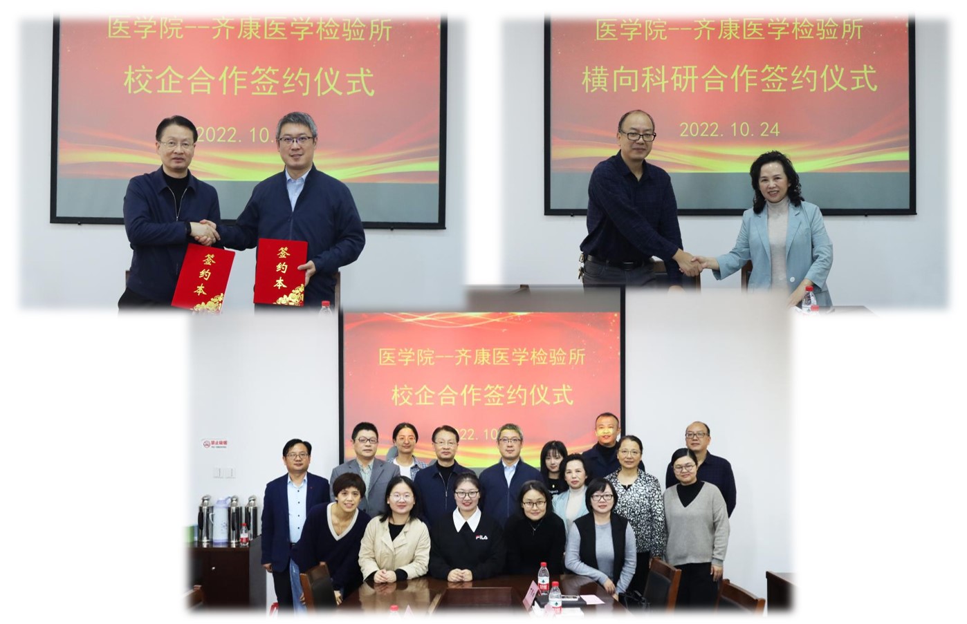 10月24日,学院与绍兴齐康医学检验所有限公司举行校企合作签约仪式。学院党政领导班子成员,办公室、医学实验中心、院团委和医学检验系部分教师参加仪式。齐康医学检验所有限公司董事长孟虎、总经理孙爱静,以及越城区政府驻企服务员、行政主管、实验室主管和视频设计师等参加仪式。