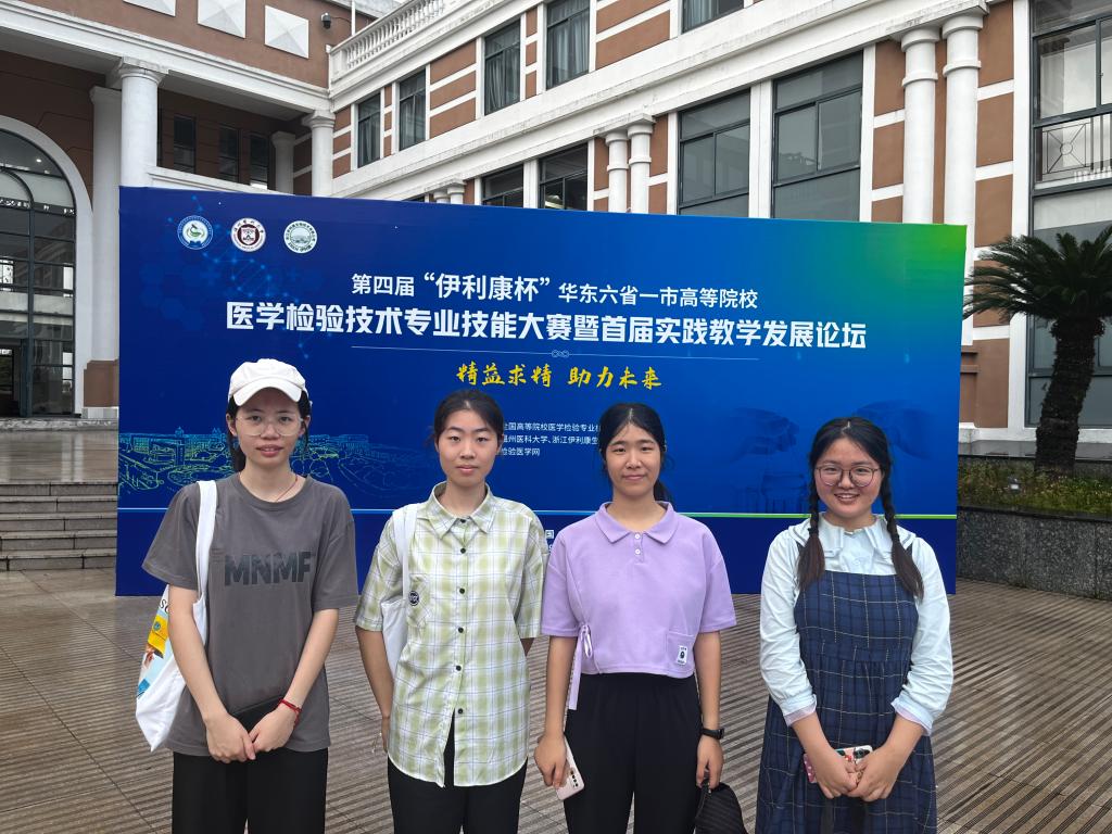 9月23日至24日,第四届“伊利康杯”华东六省一市高等院校医学检验技术专业技能大赛暨首届实践教学发展论坛在温州医科大学举行。本次大赛共有来自华东六省一市30余所高等院校的240余名学生、教师和专家参加。经过激烈角逐,我院2020级医学检验技术专业张航云、卓晨暄、张昕怡、王芸同学组成的代表队获团体二等奖,另,卓晨暄同学获得血型鉴定项目专业技能操作金奖。