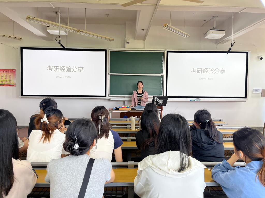 2025年5月14日,医学检验系召开考研经验分享会,旨在为同学们提供备考指导与方向引领。会议由丁志囡老师主持,系主任张建华教授、各年级学生共同参与,现场气氛热烈。