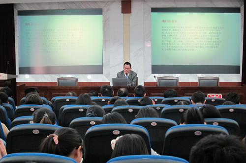 邵国良教授简单回顾了X线、CT、核磁共振MR的发展历史,着重介绍了现代医学影像学的发展趋势:设备功能更加强大、从形态显示朝向结合功能检查、影像设备的融合技术、诊断与治疗的结合、网络影像技术的发展、分子影像学等,展现很多先进的检测技术和设备。邵教授丰富的知识、精彩的演讲博得了阵阵掌声,与会师生纷纷表示受益匪浅。