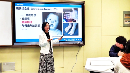 在开课前,金欣副教授依托雨课堂习题功能,带领同学们对上节课的内容及课前预习作业进行了检查,并导入了本节课学习重点——Down综合征。