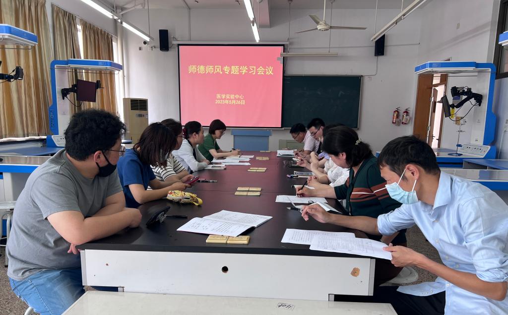为进一步加强师德师风建设,提升中心教师的思想政治素质和职业道德水平,根据学院相关工作部署,医学实验中心于5月26日上午10点组织召开了师德师风专题学习会。由中心主任俞樟森领学,全体人员参加本次学习。